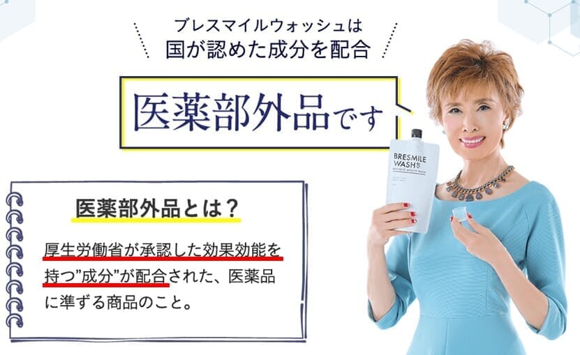 ブレスマイルウォッシュは厚生労働省が認めた効果効能に有効な成分がしっかり入った医薬部外品!