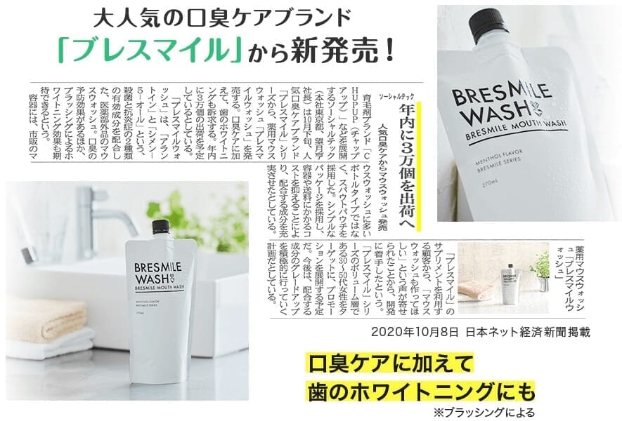 ちなみに、新聞でも話題が組まれるほどのブレスマイルウォッシュ。