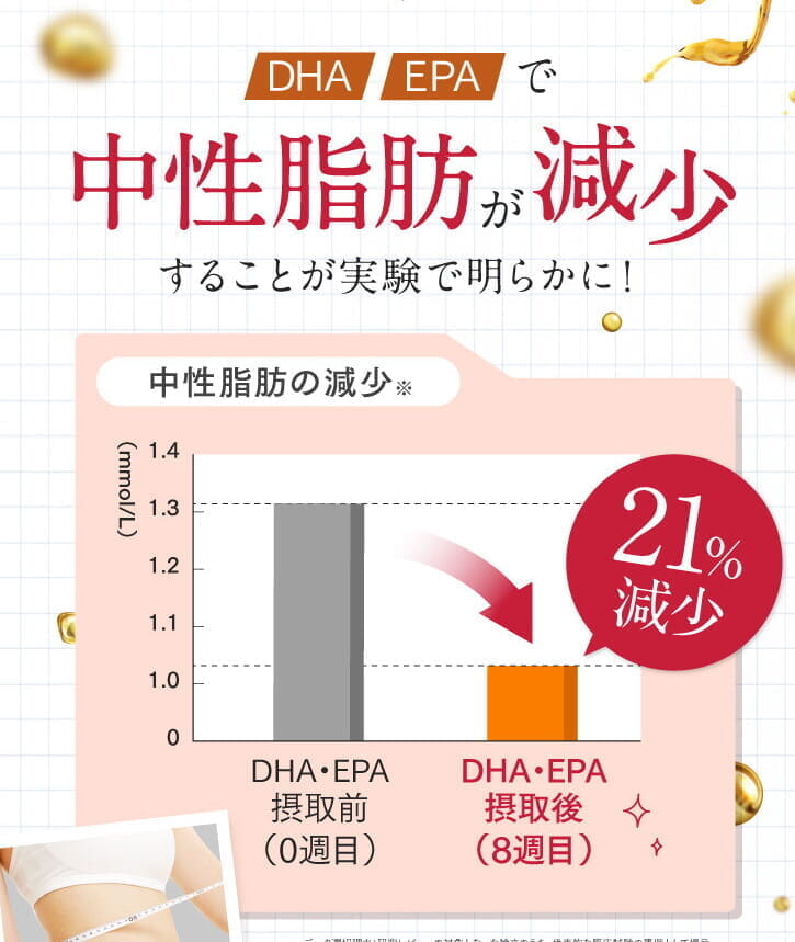 「DHA・EPA」には中性脂肪を減少させる働きがあり、医学実験でも明らかになっているんですよ。